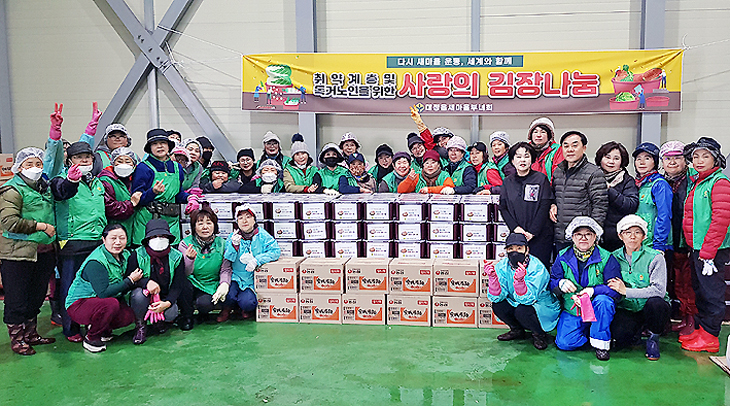 ¼±ÍÆ÷½Ã ´ëÁ¤À¾ »õ¸¶À»ºÎ³àȸ(ȸÀå ÀÌ¿µ¹Ì)´Â Áö³ 24ÀÏ Á¦ÁÖ¼¶ ģȯ°æ ¿µ³óÁ¶ÇÕ¹ýÀÎ(´ëÇ¥ ±è´ëÁÖ)°ú Çù·ÂÇØ »ç¶ûÀÇ ±èÀå ³ª´® »ç¾÷À» ÁøÇàÇß´Ù. À̳¯ ºÎ³àȸ¿ø 60¿© ¸íÀº Á÷Á¢ ´ã±Ù ±èÄ¡ 300ÅëÀ» °ü³» Ãë¾à°èÃþ¿¡ Àü´ÞÇß´Ù.