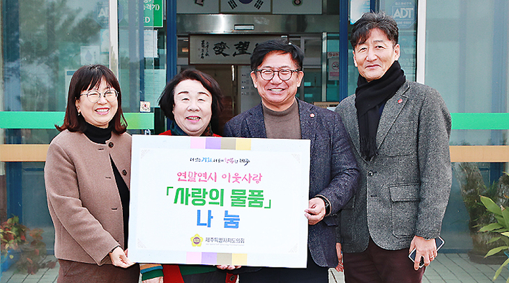 Á¦ÁÖÆ¯º°ÀÚÄ¡µµÀÇȸ´Â 28ÀÏ ¿¬¸»¿¬½Ã¸¦ ¸Â¾Æ µµ³» »çȸº¹Áö½Ã¼³ 4°³¼Ò(Á¤È¿¿ø, Á¦ÁÖº¸À°¿ø, ¼ÛÁ׿ø µî)¸¦ ¹æ¹®, Á¾»çÀÚ ¹× °ü°èÀÚµéÀ» °Ý·ÁÇϰí À§¹®Ç°À» Àü´ÞÇß´Ù.