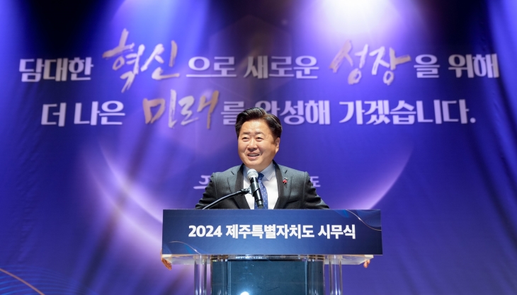 [ÇѶóÀϺ¸] Á¦ÁÖµµ°¡ '2024 °©Áø³â(Ë£òãÒ´) Á¦ÁÖµµ ½Ã¹«½Ä'À» °³ÃÖÇÏ°í ´õ¿í ´ã´ëÇÑ Çõ½ÅÀÇ ±âÄ¡·Î µµ¹Î°ú ÇÔ²² ´ç´çÇÑ Á¦Áֽô븦 ¿Ï¼ºÇÏ°Ú´Ù°í ¹àÇû´Ù.