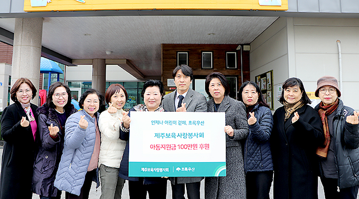 Á¦ÁÖº¸À°»ç¶ûºÀ»çȸ ¹®Á¤¿Á(Çö µµµÎÅ©·Î¹Ù¾î¸°ÀÌÁý ¿øÀå)ȸÀå°ú ÀÓ¿øµéÀº Áö³´Þ 29ÀÏ ÃÊ·Ï¿ì»ê Á¦ÁÖÁö¿ªº»ºÎ(º»ºÎÀå º¯Á¤±Ù)¿¡ µµ³» ¼Ò¿Ü ¾Æµ¿À» À§ÇØ ½á´Þ¶ó¸ç ÈÄ¿ø±Ý 100¸¸¿øÀ» Àü´ÞÇß´Ù.