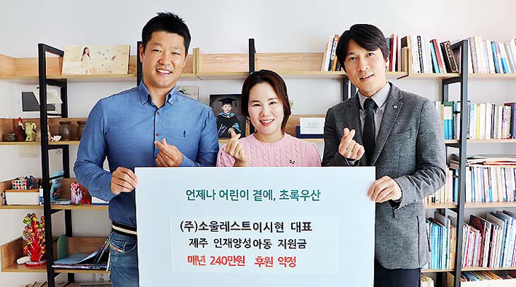 '²É°¡·çó·³ ³»·Á³õ¾Æ¶ó'ÀÇ ÀúÀÚÀÎ À̽ÃÇö (ÁÖ)¼Ò¿ï·¹½ºÆ® ´ëÇ¥ÀÌ»ç´Â Áö³ 2ÀÏ ÃÊ·Ï¿ì»ê Á¦ÁÖÁö¿ªº»ºÎ(º»ºÎÀå º¯Á¤±Ù)¸¦ ÅëÇØ ¸Å³â ÀÎÀç¾ç¼º ¾Æµ¿Áö¿ø±Ý 240¸¸¿ø ÈÄ¿øÀ» ¾àÁ¤Çß´Ù.