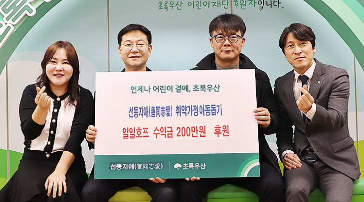 ¼±µ¿Áö¾Ö´Â À۳⠿¬¸»¿¡ °á¼Õ¾Æµ¿ ±â±Ý ¸¶·ÃÀ» À§ÇÑ »ç¶û³ª´® ÀÏÀÏÈ£ÇÁ¸¦ ÁøÇàÇϰí Áö³ 4ÀÏ ÃÊ·Ï¿ì»ê Á¦ÁÖÁö¿ªº»ºÎ(º»ºÎÀå º¯Á¤±Ù)¸¦ ¹æ¹®ÇØ ¼öÀÍ±Ý 200¸¸¿øÀ» Àü´ÞÇß´Ù.