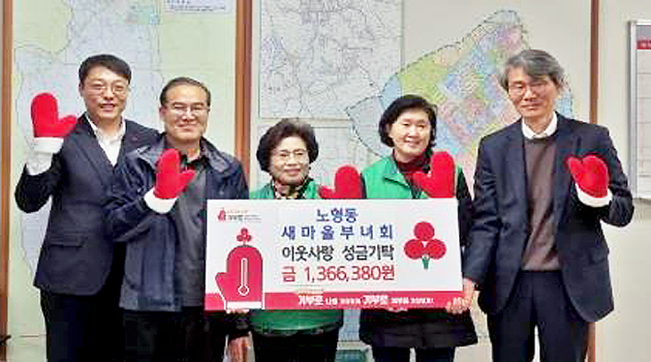 ³ëÇüµ¿ »õ¸¶À»ºÎ³àȸ(ȸÀå °¿ÁÀÚ)´Â Áö³ 2ÀÏ Á¦Áֽà ³ëÇüµ¿Áֹμ¾ÅÍ(µ¿Àå ±è½Å¿±)¸¦ ¹æ¹®ÇØ Á¦ÁÖ»çȸº¹Áö°øµ¿¸ð±Ýȸ(ȸÀå °Áö¾ð)¿¡ ÀÌ¿ô»ç¶û ¼º±Ý 136¸¸6380¿øÀ» ±âŹÇß´Ù. ¼º±ÝÀº ³ëÇüµ¿ Áö¿ª ³» ¾î·Á¿î ÀÌ¿ô¿¡°Ô Àü´ÞµÉ ¿¹Á¤ÀÌ´Ù.