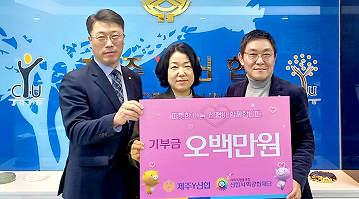 Á¦ÁÖY½ÅÇù(ÀÌ»çÀå ¿©Çý¼÷)Àº Áö³ 4ÀÏ Á¦ÁÖY½ÅÇù º»Á¡¿¡¼ ½ÅÇù»çȸ°øÇåÀç´Ü¿¡ ±âºÎ±Ý 500¸¸¿øÀ» Àü´ÞÇß´Ù. ±âºÎµÈ ±Ý¾×Àº Áö¿ª ³» °¡Á¤ÇüÆíÀÌ ¾î·Á¿î °èÃþ°ú º¹Áö»ç°¢Áö´ë¿¡ Ã³ÇØ ÀÖ´Â ÀÌ¿ô¿¡°Ô »ç¿ëµÉ ¿¹Á¤ÀÌ´Ù.