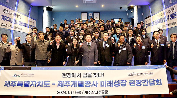 Á¦ÁÖ»ï´Ù¼ö¸¦ »ý»ê¡¤À¯ÅëÇÏ´Â Á¦ÁÖ°³¹ß°ø»ç¿Í Á¦ÁÖÀÚÄ¡µµ´Â 11ÀÏ Á¦ÁÖ»ï´Ù¼ö °øÀå¿¡¼ ÁÖ¿ä ¾÷¹« °øÀ¯¸¦ ÅëÇÑ ¼º°ú âÃâÀ» µµ¸ðÇϱâ À§ÇØ ÇöÀå °£´ãȸ¸¦ °³ÃÖÇß´Ù.