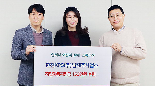 ÇÑÀüKPS(ÁÖ)³²Á¦ÁÖ»ç¾÷¼Ò(¼ÒÀå °ÁÖÇö)´Â Áö³ 10ÀÏ ÃÊ·Ï¿ì»ê Á¦ÁÖÁö¿ªº»ºÎ(º»ºÎÀå º¯Á¤±Ù)¿¡ ÀÚ¸³¾Æµ¿Áö¿ø±Ý 150¸¸¿øÀ» Àü´ÞÇß´Ù.
