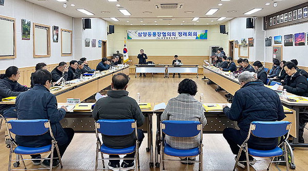 Á¦Áֽà »ï¾çµ¿Áֹμ¾ÅÍ(µ¿Àå °í»óÀÍ)¿Í ÅëÀåÇùÀÇȸ(ȸÀå ¼Û½Å¿ë)´Â Áö³ 11ÀÏ µ¿Áֹμ¾ÅÍ È¸Àǽǿ¡¼ ÅëÀå ¹× °ü°è °ø¹«¿ø µî 30¿© ¸íÀÌ Âü¿©ÇÑ °¡¿îµ¥ 1¿ù Á¤·Ê ÅëÀåȸÀǸ¦ °³ÃÖÇß´Ù.