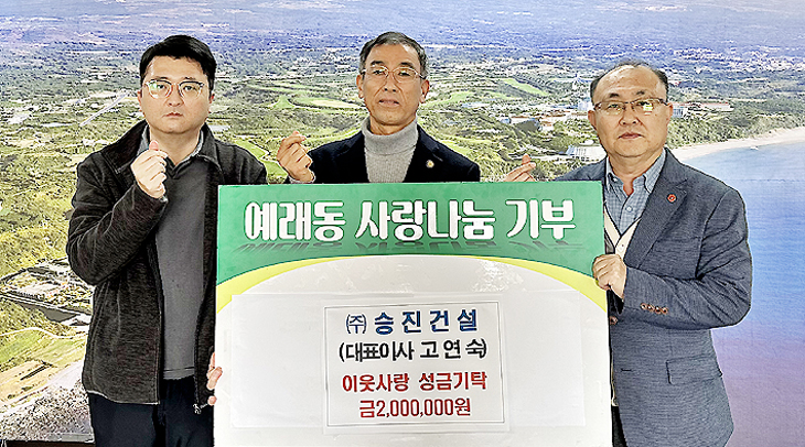 (ÁÖ)½ÂÁø°Ç¼³(´ëÇ¥ °í¿¬¼÷)Àº Áö³ 11ÀÏ ¼±ÍÆ÷½Ã ¿¹·¡µ¿Áֹμ¾Å͸¦ ¹æ¹®ÇØ °ü³» Ãë¾à°èÃþÀ» À§ÇØ »ç¿ëÇØ ´Þ¶ó¸ç ¼º±Ý 200¸¸¿øÀ» ±âŹÇß´Ù.