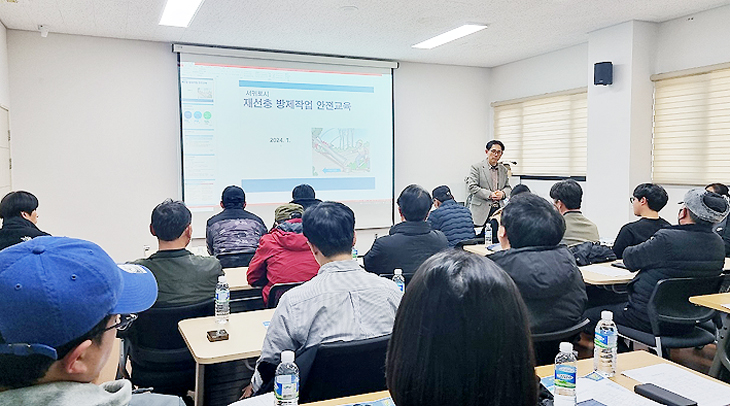 ¼±ÍÆ÷½Ã´Â Áö³ 12ÀÏ ÀÌ´Þ 16ÀϺÎÅÍ 4¿ù±îÁö ÃßÁøµÇ´Â »ó¹Ý±â ¼Ò³ª¹«Àç¼±Ãæº´ ¹æÁ¦ »ç¾÷À» ¾ÕµÎ°í ¹æÁ¦ Âü¿©ÀÚ 14°³ ¾÷ü 25¸íÀ» ´ë»óÀ¸·Î ´ëÇÑ»ê¾÷¾ÈÀüÇùȸ ±³À° ´ã´çÀÚ¸¦ ÃÊÃ»ÇØ ¹æÀçÀÛ¾÷ ¾ÈÀü±³À°À» ½Ç½ÃÇß´Ù.