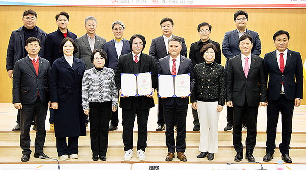 Á¦ÁÖµµÀÇȸ ±¹¹ÎÀÇÈû ÀÇ¿øµé°ú °æ±âµµÀÇȸ ±¹¹ÎÀÇÈû ÀÇ¿øµéÀº ÃÖ±Ù °æ±âµµÀÇȸ ´ëȸÀǽǿ¡¼ ¾÷¹«Çù¾àÀ» ü°áÇß´Ù.