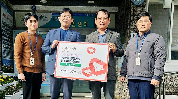 ¼±ÍÆ÷½Ã ¿µÃµµ¿ ÁֹΠ¿ÀÃ¢ÈÆ¾¾´Â Áö³ 17ÀÏ ¿µÃµµ¿Áֹμ¾ÅÍ(µ¿Àå Á¤ÇöºÎ)¸¦ ¹æ¹®ÇØ ¾î·Á¿î ÀÌ¿ôµ½±â ¼º±Ý 100¸¸¿øÀ» Àü´ÞÇß´Ù. À̹ø ¼º±ÝÀº Ãë¾à°èÃþÀ» À§ÇÑ º¹Áö »ç¾÷¿¡ »ç¿ëÇÒ ¿¹Á¤ÀÌ´Ù.
