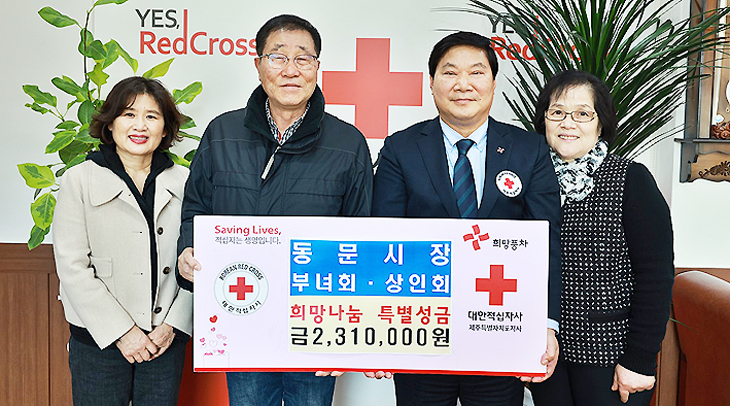 µ¿¹®Àç·¡½ÃÀå »óÀÎȸ(ȸÀå ±è¿øÀÏ)¿Í ºÎ³àȸ(ȸÀå ¹ÚÇØ·Ê)´Â Áö³ 17ÀÏ ´ëÇÑÀû½ÊÀÚ»çÁ¦ÁÖµµÁö»ç(ȸÀå Á¤Å±Ù) Áö»çȸÀå½Ç¿¡¼ Ãë¾à°èÃþ Áö¿øÀ» À§ÇÑ Èñ¸Á³ª´®Æ¯º°¼º±Ý 231¸¸¿øÀ» Àü´ÞÇß´Ù.