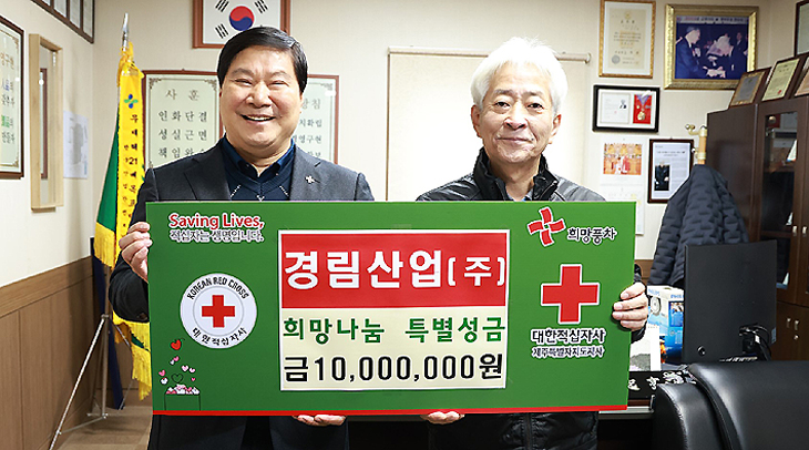 °æ¸²»ê¾÷(ÁÖ)(´ëÇ¥ ±è±âÇü)Àº Áö³ 22ÀÏ Á¦Áֽà ¼ÒÀç °æ¸²»ê¾÷ ´ëÇ¥½Ç¿¡¼ ´ëÇÑÀû½ÊÀÚ»çÁ¦ÁÖÆ¯º°ÀÚÄ¡µµÁö»ç(ȸÀå Á¤Å±Ù)¿¡ ¼Ò¿ÜµÈ ÀÌ¿ôÀ» µ½±â À§ÇÑ Èñ¸Á³ª´® Ưº°¼º±Ý 1000¸¸¿øÀ» Àü´ÞÇß´Ù.