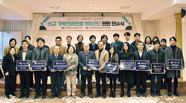 Á¦ÁÖ¿©¼º°¡Á·¿¬±¸¿ø Á¦ÁÖ°¡Á·Ä£ÈÁö¿ø¼¾ÅÍ´Â Áö³ 26ÀÏ È£Åڽø®¿ì½ºÁ¦ÁÖ¿¡¼ ½Å±Ô °¡Á·Ä£ÈÀÎÁõ±â¾÷ ÇöÆÇ Àü¼ö½ÄÀ» °³ÃÖÇß´Ù. À̳¯ Çà»ç¿¡´Â 2023³â ½Å±Ô °¡Á·Ä£ÈÀÎÁõ 11°³ ±â¾÷¡¤±â°ü Áß 10°³ ±â¾÷¡¤±â°ü ´ëÇ¥¿Í °ü°èÀÚ µîÀÌ Âü¼®Çß´Ù.