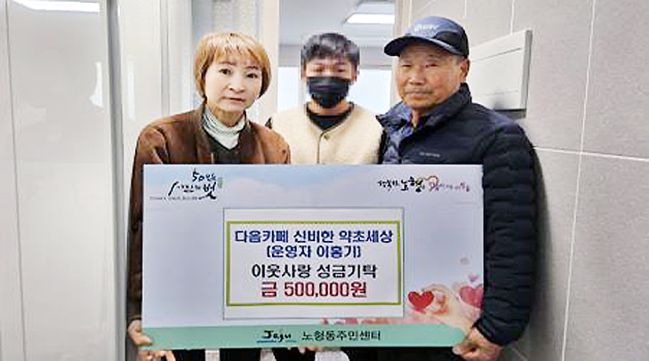 ´ÙÀ½Ä«Æä '½ÅºñÇÑ ¾àÃʼ¼»ó'(¿î¿µÀÚ ÀÌÈ«±â)Àº Áö³´Þ 29ÀÏ Á¦Áֽà ³ëÇüµ¿ Áö¿ª ³» ¾î·Á¿î ÀÌ¿ô 2°¡±¸¸¦ ¹æ¹®ÇØ ¼º±Ý 100¸¸¿øÀ» Àü´ÞÇß´Ù.