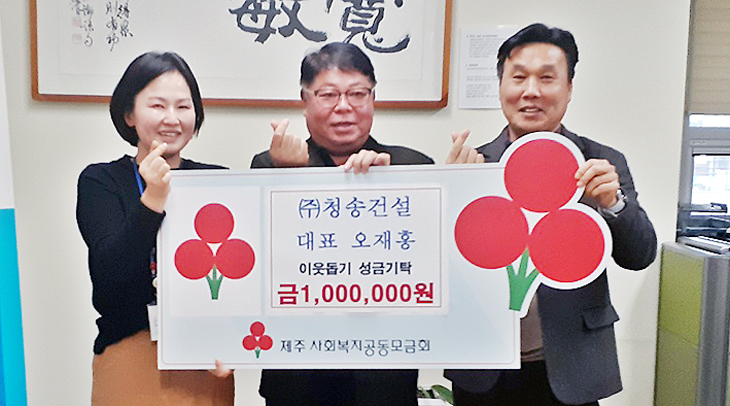 ÁÖ½Äȸ»ç û¼Û°Ç¼³(´ëÇ¥ ¿ÀÀçÈ«)Àº Áö³´Þ 29ÀÏ ¼±ÍÆ÷½Ã ³²¿øÀ¾ °ü³» ¾î·Á¿î ÀÌ¿ôÀ» µ½´Â µ¥ »ç¿ëÇØ ´Þ¶ó¸ç ¼º±Ý 100¸¸¿øÀ» ³²¿øÀ¾(À¾Àå Á¤Ã¢¿ë)¿¡ ±âŹÇß´Ù.