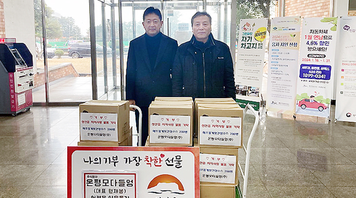 ¼±ÍÆ÷½Ã ¿ÂÆò¸® ¼ÒÀç (ÁÖ)¿ÂÆò¸ð´Ùµé¾û(´ëÇ¥ ÇöÀçºØ)Àº Áö³´Þ 31ÀÏ ¼±ÍÆ÷½Ã ¼º»êÀ¾»ç¹«¼Ò(À¾Àå ±è°æ¹ü)¸¦ ¹æ¹®ÇØ °ü³» ¾î·Á¿î ÀÌ¿ô¿¡°Ô Àü´ÞÇØ ´Þ¶ó¸ç ¾÷ü¿¡¼ Á¦Á¶ÇÑ ÇØÃÊÈ«°Ô¸À°£Àå¼Ò½º 204°³(180¸¸¿ø »ó´ç)¸¦ ±âŹÇß´Ù.