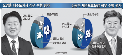 ¢¹Á¦ÁÖÆ¯º°ÀÚÄ¡µµ±³À°°¨ Á÷¹« ¼öÇà Æò°¡=±è±¤¼ö Á¦ÁÖµµ±³À°°¨ÀÇ Á÷¹« ¼öÇà¿¡ ´ëÇØ¼´Â µµ¹Î 59%°¡ 'ÀßÇϰí ÀÖ´Ù'°í ÀÀ´äÇß´Ù. 24%´Â 'À߸øÇϰí ÀÖ´Ù'°í ´äÇß°í '¾î´À Âʵµ ¾Æ´Ï´Ù' 3%, '¸ð¸§¡¤ÀÀ´ä°ÅÀýÀº 14%¿´´Ù.