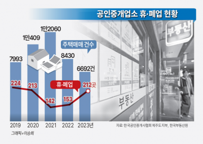 [ÇѶóÀϺ¸] ºÎµ¿»ê ½ÃÀå ħü°¡ Àå±âÈµÇ°í °Å·¡ Àýº®ÀÌ ½ÉÈµÇ¸é¼ Á¦ÁÖÁö¿ª¿¡¼ ÈÞ¡¤Æó¾÷ÇÏ´Â ºÎµ¿»ê Áß°³¾÷¼Ò°¡ ´Ã°í ÀÖ´Ù. ¹® ´Ý°Å³ª Àá½Ã Áß´ÜÇÏ´Â Áß°³¾÷¼Ò ¼ö°¡ »õ·Î °³¾÷ÇÑ Áß°³¾÷¼Ò ¼ö¸¦ ³Ñ¾î¼´Â Çö»óµµ ³ªÅ¸³ª°í ÀÖ´Ù.