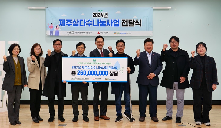 ÀÌ¿Í °ü·Ã °ø»ç´Â Áö³´Þ 29ÀÏ Á¦ÁÖ°³¹ß°ø»ç ¹é°æÈÆ »çÀåÀ» ºñ·ÔÇØ Á¦ÁÖ»çȸº¹Áö°øµ¿¸ð±Ýȸ °Áö¾ð ȸÀå, Á¦ÁÖ»çȸÀû°æÁ¦³×Æ®¿öÅ© °È£Áø ´ëÇ¥ ¹× ¼öÇý±â°ü ±â°üÀåµéÀÌ Âü¼®ÇÑ °¡¿îµ¥ Á¦ÁÖ»çȸÀû°æÁ¦Áö¿ø¼¾ÅÍ¿¡¼ Á¦ÁÖ»çȸº¹Áö°øµ¿¸ð±Ýȸ¿Í ÇÔ²² 'Á¦ÁÖ»ï´Ù¼ö ³ª´®»ç¾÷' ¾÷¹«Çù¾àÀ» ü°áÇß´Ù. À̸¦ ÅëÇØ ³ª´®»ç¾÷ ¿î¿µºñ¿Í Á¦ÁÖ»ï´Ù¼ö ¾à 33¸¸2000º´À» Æ÷ÇÔÇÑ ÃÑ 2¾ï6000¸¸¿øÀ» Àü´ÞÇß´Ù.