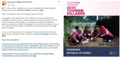 Á¦ÁÖÆ¯º°ÀÚÄ¡µµ¿Í Á¦ÁÖ°ü±¤°ø»ç´Â Áö³ 8ÀÏ ±¹Á¦ ¿©¼ºÀÇ ³¯À» ±â³äÇØ Á¦ÁÖÀÇ ÃÖ¿ì¼ö °ü±¤¸¶À» Áß ÇÑ °÷ÀÎ ¼±ÍÆ÷½Ã ³²¿øÀ¾ ½ÅÈï2¸® µ¿¹é¸¶À» ¿©¼ºÀÇ °ÇÑ °øµ¿Ã¼ Á¤½Å°ú ¸®´õ½ÊÀÌ À¯¿£ °ü±¤Ã»(UN Tourism) °ø½Ä SNS È«º¸ ä³Î¿¡ ¼Ò°³µÆ´Ù°í 13ÀÏ ¹àÇû´Ù.