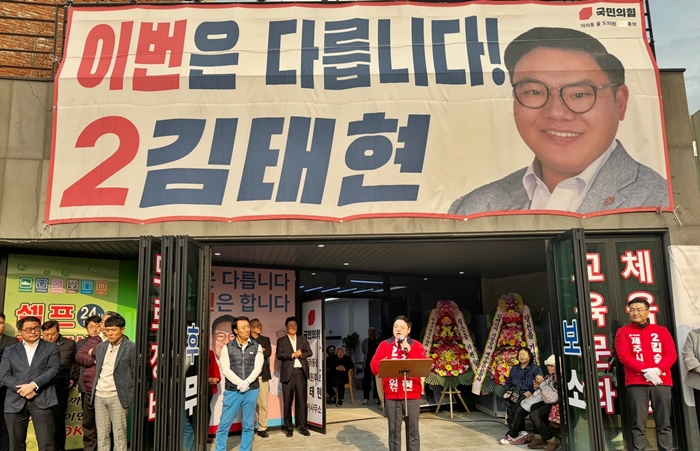 [ÇѶóÀϺ¸] 4¡¤10 Á¦ÁÖÀÚÄ¡µµÀÇ¿ø ¾Æ¶óµ¿À»¼±°Å±¸ º¸±È¼±°Å ±èÅÂÇö ¿¹ºñÈĺ¸(±¹¹ÎÀÇÈû)ÀÌ ¼±°Å»ç¹«¼Ò °³¼Ò½ÄÀ» ¿°í "¾Æ¶óµ¿ ¹ßÀüÀ» À§ÇØ ¹Ýµå½Ã ½Â¸®ÇϰڴÙ"´Â ÀÇÁö¸¦ ¹àÇû´Ù.