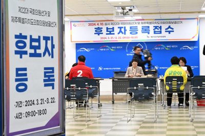 [ÇѶóÀϺ¸] 4¿ù10ÀÏ Ä¡·¯Áö´Â Á¦22´ë ±¹È¸ÀÇ¿ø ¼±°Å Èĺ¸ µî·Ï ù ³¯ Á¦ÁÖÁö¿ª 3°³ ¼±°Å±¸ ÁÖ¿ä È帵éÀÌ ÀÏÁ¦È÷ Èĺ¸ µî·ÏÀ» ¸¶Ä¡°í º»°Ý ¼±°ÅÀü¿¡ µé¾î°¬´Ù.