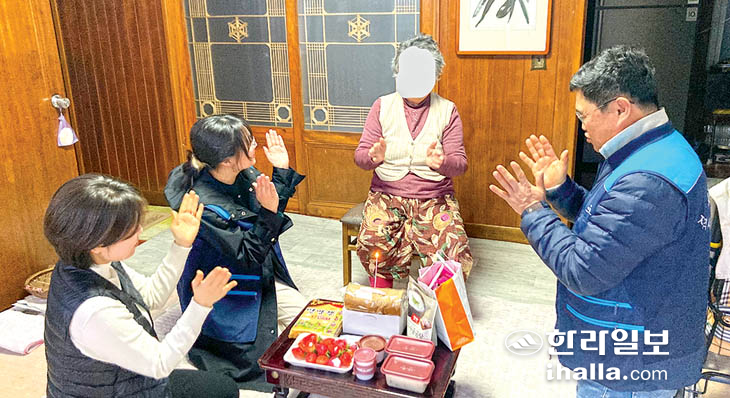 ÀÚ¿øºÀ»ç´Ü¿øµéÀº À̳¯ Á¤¼ºÀ» ´ãÀº À徯Â Ȧ·Î »ç´Â ¾î¸£½Å µî Ãë¾à°èÃþ 80¿© °¡±¸¿¡ Àü´ÞÇÏ¸ç ¾ÈºÎ¸¦ ¹¯´Â µî ¾î·Á¿î ÀÌ¿ô¿¡ ´ëÇÑ »ç¶ûÀ» ½ÇõÇß´Ù.