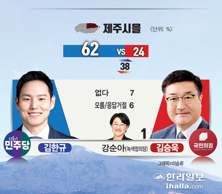 3ÀÚ °æÀﱸµµ·Î Çü¼ºµÈ Á¦ÁÖ½ÃÀ» ¼±°Å±¸¿¡¼´Â Àç¼±À» ³ë¸®´Â ±èÇÑ±Ô È帰¡ 62%ÀÇ ÁöÁöµµ¸¦ ¾òÀ¸¸ç ±è½Â¿í Èĺ¸(24%)¿Í ³ì»öÁ¤ÀÇ´ç °¼ø¾Æ Èĺ¸(1%)ÀÇ Ãß°ÝÀ» µûµ¹¸®¸ç ÁúÁÖÇϰí ÀÖ´Ù. #´ç¼± °¡´É¼º¿¡ ´ëÇÑ Á¶»ç¿¡¼µµ ±èÇÑ±Ô È帰¡ 75%¸¦ Â÷ÁöÇÏ¸ç ±è½Â¿í Èĺ¸(12%)¿Í °¼ø¾Æ Èĺ¸(1%)¿¡°Ô¼ ¸ÖÂġ ´Þ¾Æ³ª°í ÀÖ´Ù.