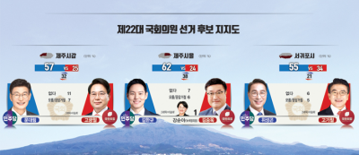 ÃÖ±Ù ½Ç½ÃÇÑ Á¦ÁÖÁö¿ª 4¡¤10 ÃѼ± ¿©·ÐÁ¶»ç °á°ú, ´õºÒ¾î¹ÎÁÖ´ç ¹®´ë¸²(Á¦Áֽð©)¡¤±èÇѱÔ(Á¦ÁÖ½ÃÀ»)¡¤À§¼º°ï(¼±ÍÆ÷½Ã) È帰¡ ÁöÁöµµ¿Í ´ç¼± °¡´É¼º¿¡¼ ¸ðµÎ 2À§ È帵é°ú ¿ÀÂ÷¹üÀ§ ¹Û¿¡¼ °ÝÂ÷¸¦ ¹úÀÌ¸ç ¼±µÎ¸¦ ´Þ¸®°í ÀÖ´Ù. À̸¦ ±¹¹ÎÀÇÈû Èĺ¸ °í±¤Ã¶(Á¦Áֽð©)¡¤±è½Â¿í(Á¦ÁÖ½ÃÀ»)¡¤°í±âö(¼±ÍÆ÷½Ã) È帰¡ ±× µÚ¸¦ Ãß°ÝÇÏ´Â ¾ç»óÀÌ´Ù.