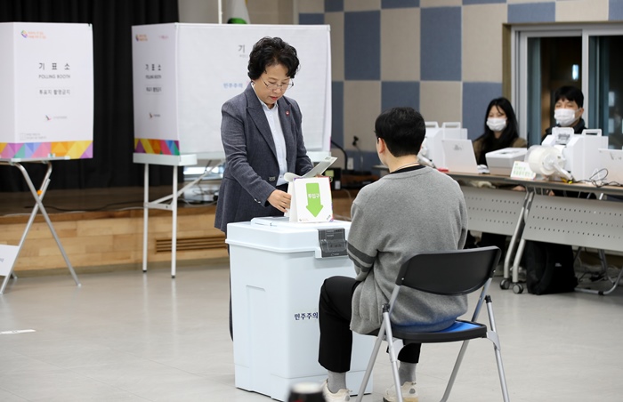 [ÇѶóÀϺ¸] 4¿ù10ÀÏ Á¦ÁÖÀÚÄ¡µµÀÇ¿ø ¾Æ¶óµ¿À» º¸±È¼±°Å ¹«¼Ò¼Ó °¹Î¼÷ È帰¡ 5ÀÏ Á¦Áֽà ¾Æ¶óµ¿Áֹμ¾ÅÍ ÅõÇ¥¼Ò¿¡¼ ÅõÇ¥¸¦ ¸¶Ä¡¸¦ ¸¶Ä¡°í "°ËÁõµÈ ÀϲÛÀ» ¼±ÅÃÇØ ´Þ¶ó"°í È£¼ÒÇß´Ù.