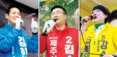"ÇÑ Ç¥¶óµµ ´õ"¼±°Å Àü ¸¶Áö¸· ÁÖ¸»ÀÎ 7ÀÏ Á¦ÁÖ½ÃÀ» ¼±°Å±¸ Ã⸶ È帵éÀÌ ¸·ÆÇ Ç¥½É Àâ±â¿¡ ÇÑâÀÌ´Ù. ¿ÞÂʺÎÅÍ ´õºÒ¾î¹ÎÁÖ´ç ±èÇѱÔ, ±¹¹ÎÀÇÈû ±è½Â¿í, ³ì»öÁ¤ÀÇ´ç °¼ø¾Æ Èĺ¸. À̻󱹱âÀÚ