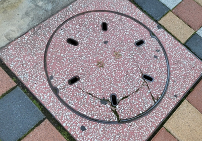 Á¦Áֽà °ÇÀÔµ¿ ÃʵîÇб³ ÁÖº¯ º¸µµ¿¡ ¼³Ä¡µÈ ÄÜÅ©¸®Æ® ÀçÁúÀÇ ¸ÇȦ ¶Ñ²±ÀÌ °¥¶óÁ® ±ÝÀÌ »ý°å´Ù.