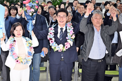´ç¼±ÀÌ È®½Ç½ÃµÇÀÚ ¼±°Å»ç¹«¼Ò¿¡ µµÂøÇÑ ¹® È帴 "¾ÕÀ¸·Î ¹Î»ýÀ» ȸº¹Çϴµ¥ ÁßÁ¡À» µÎ°í ¼º°úÀÇ Á¤Ä¡·Î º¸´äÇϰڴÙ"¸ç ±×µ¿¾È ¼±°Å¿îµ¿¿¡ Âü¿©ÇØÁØ ÀÚ¿øºÀ»çÀÚ¿Í ¼º¿øÇØÁØ Á¦Áֽùε鿡°Ô °í¸¶¿òÀ» Ç¥½ÃÇß´Ù.