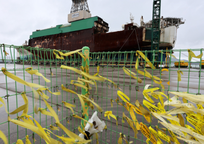 304¸íÀÇ ¼ÒÁßÇÑ »ý¸íÀÌ Èñ»ýµÈ ¼¼¿ùÈ£ Âü»ç°¡ ¿À´Ã(16ÀÏ) 10Áֱ⸦ ¸Â¾Ò´Ù. ¼¼¿ùÈ£°¡ Àü½ÃµÅ ÀÖ´Â Àü³² ¸ñÆ÷½ÅÇ׿¡ ³ë¶õ ¸®º»ÀÌ ³ªºÎ³¢°í ÀÖ´Ù. ¿¬ÇÕ´º½º