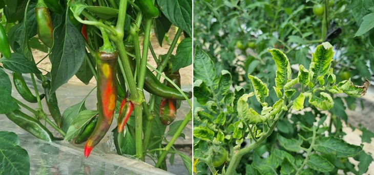 Å丶Åä¹ÝÁ¡À§Á¶¹ÙÀÌ·¯½º¿¡ °¨¿°µÈ °íÃß¿Í Å丶ÅäȲÈÀÙ¸»¸²¹ÙÀÌ·¯½º¿¡ °¨¿°µÈ Å丶Åä(¿À¸¥ÂÊ). Á¦ÁÖµµ³ó¾÷±â¼ú¿ø Á¦°ø