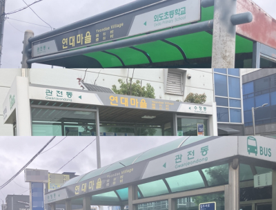 29ÀÏ Á¦Áֽà ¿Üµµ2µ¿ÀÇ ¿¬´ë¸¶À» ¹ö½ºÁ¤·ùÀåÀ» ã¾Æ È®ÀÎÇÑ °á°ú, '¿¬´ë¸¶À»'À̶ó°í ºÒ¸®´Â ¹ö½ºÁ¤·ùÀå 3°÷À» ¹ß°ßÇÒ ¼ö ÀÖ¾ú´Ù. ÀÌÁß 2°÷Àº ¼·Î ¸¶ÁÖ º¸´Â ¹æÇâ¿¡ À§Ä¡ÇØ ÀÖ¾úÁö¸¸ 1°÷Àº 800¿©m³ª ¶³¾îÁø °÷¿¡ ÀÖ¾úÀ¸¸ç, ½ÉÁö¾î´Â Á¤·ù¼Ò¹øÈ£°¡ ÀûÇôÀÖ´Â ½ºÆ¼Ä¿µµ ºÎÂøµÅ ÀÖÁö ¾Ê¾Ò´Ù. ¹ö½º ¾È³» ¾Û¿¡¼´Â '¿¬´ë¸¶À»'À» µ¿¡¤³²¡¤ºÏ µîÀ¸·Î ±¸ºÐÇßÁö¸¸, ½ÇÁ¦ ¹ö½ºÁ¤·ùÀå Ç¥ÁöÆÇ¿¡´Â ¸ðµÎ ¿¬´ë¸¶À»¸¸ ÀûÇô ÀÖ¾ú´Ù.