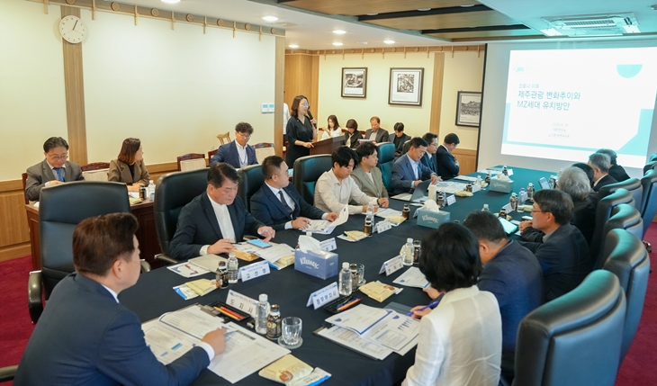 À̳¯ ½ºÅ͵ð±×·ì ȸÀÇ¿¡¼´Â MZ¼¼´ëÀÇ °ü±¤ ¼Òºñ °æÇâ, ¼±È£ÇÏ´Â °ü±¤»óǰ, Á¤º¸ ½Àµæ °æ·Î µîÀ» ¸é¹ÐÈ÷ ºÐ¼®Çؼ À̵éÀÇ ¼Òºñ Æ®·»Æ®¿¡ ¸Â´Â °ü±¤»óǰ °³¹ß°ú °ü·Ã ÄÜÅÙÃ÷ ¹× ±â¹Ý½Ã¼³ ±¸ÃàÀ» ÅëÇØ Á¦ÁÖ °ü±¤ÀÇ »õ·Î¿î ¼ºÀå µ¿·ÂÀ» ¸ð»öÇϱâ À§ÇØ ¸¶·ÃµÆÀ¸¸ç, ¿À¿µÈÆ Á¦ÁÖµµÁö»ç¿Í Á¦ÁÖ°ü±¤°ø»ç, Á¦ÁÖ°ü±¤Çùȸ µî À¯°ü±â°ü°ú Çаè(ÇѶó´ë, Á¦ÁÖ´ë), û³â¿øÅ¹È¸ÀÇ À§¿øÀå, û³â±â¾÷, °ü·Ã ½Ç±¹¡¤°úÀåµéÀÌ Âü¼®Çß´Ù.