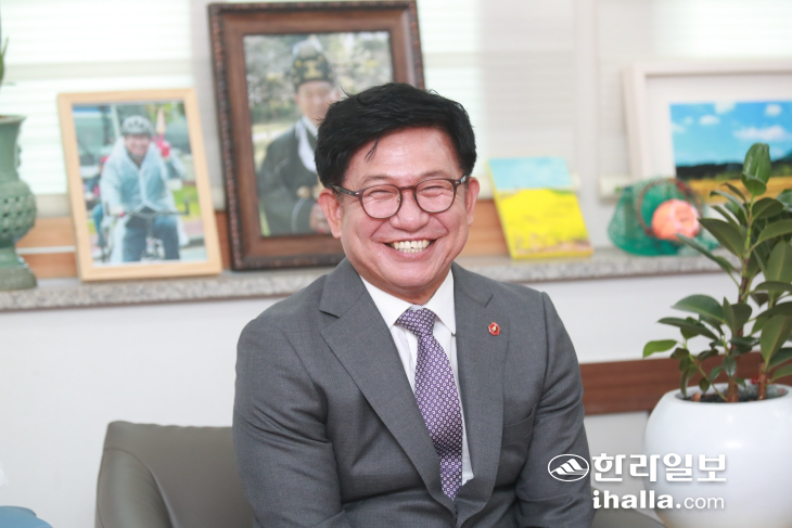 [ÇѶóÀϺ¸] Á¦12´ë Á¦ÁÖÆ¯º°ÀÚÄ¡µµÀÇȸ Àü¹Ý±â¸¦ À̲ö ±è°æÇÐ ÀÇÀåÀÌ ÀÓ±â 2³â°£ÀÇ ¼Òȸ¸¦ ¹¯´Â Áú¹®¿¡ "°¡Àå ¾Æ½¬¿ü´ø °ÍÀº ¹Î»ý °æÁ¦ ȸº¹"À̶ó°í ¸»Çß´Ù. ¾ÕÀ¸·ÎÀÇ Á¤Ä¡ Çຸ¿¡ ´ëÇØ¼± "(µµÀÇ¿ø Àӱ⸦ ³²°ÜµÐ) Áö±Ý ½ÃÁ¡¿¡¼± ±¸Ã¼ÀûÀ¸·Î ¾ð±ÞÇÏ´Â °Ô ÀûÀýÇÏÁö ¾Ê´Ù"¸é¼µµ "Á¤Ä¡Àû °ø°£ÀÌµç ºñÁ¤Ä¡Àû °ø°£À̵ç, ±×µ¿¾È ¹ÞÀº »ç¶ûÀ» µµ¹Î»çȸ¿¡ µ¹·ÁÁÖ±â À§ÇÑ ¿ªÇÒÀ» ÇØ ³ª°¡°Ú´Ù"°í Çß´Ù.