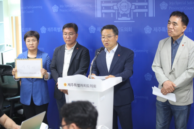 ´õºÒ¾î¹ÎÁÖ´ç ¼Ò¼Ó °¼ºÀÇ, ¼Ûâ±Ç, ¾ç¿µ½Ä, Çϼº¿ë Á¦ÁÖµµÀÇ¿øÀº 24ÀÏ µµÀÇȸ ±âÀڽǿ¡¼ ±âÀÚȸ°ßÀ» ¿°í "Å¿µÈ£ Àü ÀÇ¿øÀº Á¦ÁÖ4¡¤3À» ±èÀϼºÀÇ Áö·É¿¡ ÀÇÇØ Ã˹ߵƴٰí ÁÖÀåÇϸç 4¡¤3À» ¿Ö°îÇÏ°í ÆïÈÑÇß´Ù"¸ç Å Àü ÀÇ¿øÀÇ »ç¹«Ã³Àå ÀÓ¸í¿¡ ¹Ý´ëÇÏ¸ç »çÁ÷¼¸¦ Á¦ÃâÇÑ´Ù°í ¹àÇû´Ù. ±âÀÚȸ°ß¿¡´Â Âü¼®ÇÏÁö ¾Ê¾ÒÁö¸¸ °°Àº ´ç ±è°æ¹Ì, Çö±æÈ£ ÀÇ¿øµµ »çÁ÷¼ Á¦Ãâ¿¡ ÀǰßÀ» °°ÀÌÇß´Ù.