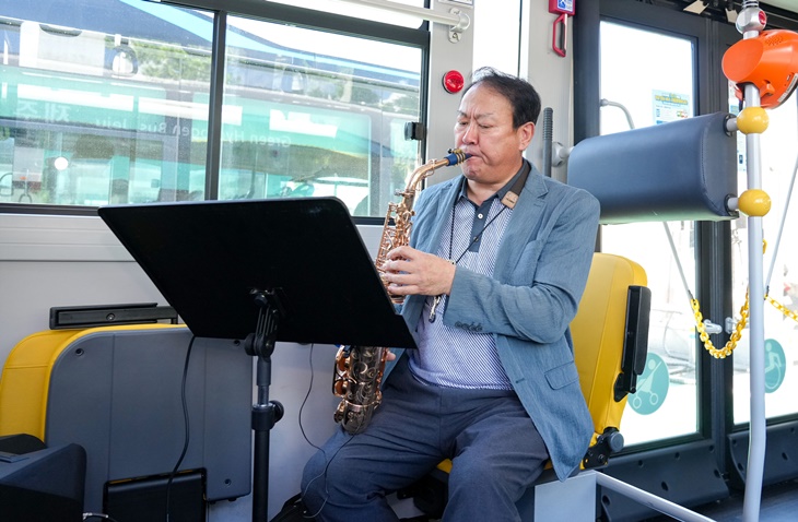5ÀÏ µµ¿¡ µû¸£¸é ÇѶó¼ö¸ñ¿ø¿¡¼ Á¦ÁÖ½Ãû±îÁö À̵¿ÇÏ´Â ¹ö½º ¾È¿¡¼ ÀÌ»öÀûÀÎ »ö¼ÒÆù ¿¬ÁÖ¸¦ ÅëÇØ ¾Æ¸§´Ù¿î ¼±À²·Î ½Â°´µé¿¡°Ô Èú¸µÀ» ¼±»çÇϰí ÀÖ´Ù.