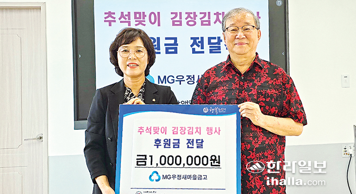 À̳¯ °£´ãȸ¿¡¼ ¿Â¾çÀ¾ÁÖ¹ÎÀÚÄ¡À§¿øÈ¸´Â Á¦ÁÖ°íÇâ»ç¶û±âºÎ±Ý(100¸¸¿ø)À» Àü´ÞÇß´Ù.