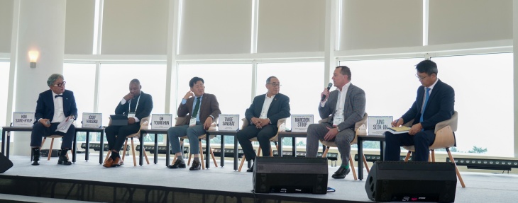 25ÀÏ Á¦ÁÖ±¹Á¦ÄÁº¥¼Ç¼¾ÅÍ¿¡¼ ¿¸° '2025 ±×¸°¼ö¼Ò ±Û·Î¹ú Æ÷·³' ±Û·Î¹ú ¶ó¿îµå Å×ÀÌºí¿¡¼´Â ¾Æ½Ã¾Æ¡¤ÅÂÆò¾ç¡¤¾ÆÇÁ¸®Ä« µî 5°³±¹ Á¤ºÎ¡¤±â¾÷¡¤±¹Á¦±â±¸ °ü°èÀÚµéÀÌ Âü¼®ÇØ Ã»Á¤¼ö¼Ò¸¦ ÅëÇÑ Åº¼ÒÁ߸³ ½ÇÇö ¹æ¾ÈÀ» ÁýÁß ³íÀÇÇß´Ù. ¼¼¼Ç¿¡´Â ±è»óÇù ±Û·Î¹ú³ì»ö¼ºÀå±â±¸(GGGI) »ç¹«ÃÑÀåÀ» ÁÂÀåÀ¸·Î ¿À¿µÈÆ Á¦ÁÖµµÁö»ç, Ÿ´Ï »ó¶ù(Tanee Sangrat) ÁÖÇÑ Å±¹´ë»ç, ¿ä¼¼ÇÁ È£½ÃÅ©(Josef Hausiku) ³ª¹Ìºñ¾Æ ±¹°¡±âȹÀ§¿øÈ¸ ¼ö¼®ÀÚ¹®°ü, ¸¶¸£Äí¿£ ½ºÅú(Marcoen Stoop) Nel ¾Æ½Ã¾Æ¡¤ÅÂÆò¾ç ºñÁî´Ï½º °³¹ß ÀÌ»ç, Á¤¼®Áø Çѱ¹¼ö¼Ò¿¬ÇÕ »ç¹«ÃÑÀå, ÄË ¶ó¹Ì³×Áî(Ken Raminez) Çö´ëÀÚµ¿Â÷ ¿¡³ÊÁö&¼ö¼Ò»ç¾÷º»ºÎ ºÎ»çÀåÀÌ Âü¿©Çß´Ù.