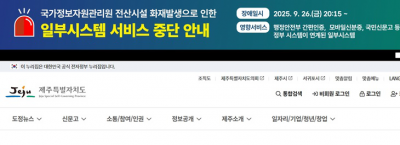 Áø¸í±â Á¦ÁÖµµ ÇàÁ¤ºÎÁö»ç´Â À̳¯ ¿ÀÀü 8½Ã µµ¡¤ÇàÁ¤½Ã ±ä±Þ ȸÀǸ¦ ¼ÒÁýÇØ Áß¾Ó ÇàÁ¤½Ã½ºÅÛ Áß´Ü¿¡ µû¸¥ ¹®Á¦Á¡À» ½Å¼ÓÈ÷ ÆÄ¾ÇÇÏ°í ´ëÀÀ ¹æ¾È °±¸¸¦ Áö½ÃÇß´Ù. Á¦ÁÖµµ´Â "ÇöÀç Á¤ºÎ Àü»ê¼¾ÅÍ ÈÀç·Î ±¹¹Î½Å¹®°í, û¿ø24, Á¤ºÎ24, ¹®¼24, Á¤º¸°ø°³Æ÷ÅÐ, ³ª¶óÀåÅÍ µî 70¿© °³ Áß¾Ó ÇàÁ¤½Ã½ºÅÛÀÌ Áß´ÜµÈ »óȲ"À̶ó¸ç "µµ¿Í ÇàÁ¤½Ã¿¡¼ ¿î¿µ ÁßÀÎ ÃÑ 273°³ Á¤º¸½Ã½ºÅÛÀ» ´ë»óÀ¸·Î Á߾ӽýºÅÛ°úÀÇ ¿¬°è ¿©ºÎ¿Í ¿µÇâ ¹üÀ§¸¦ Àü¼ö Á¶»çÇϰí ÀÖ´Ù"°í ÀüÇß´Ù.