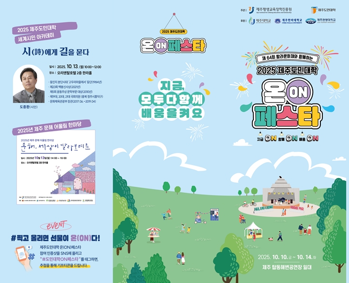 [ÇѶóÀϺ¸] Á¦ÁÖÁö¿ª Æò»ýÇнÀ ÃàÁ¦ '2025 Á¦ÁÖµµ¹Î´ëÇÐ ¿Â(ON) Æä½ºÅ¸'°¡ ¿À´Â 14ÀϺÎÅÍ ÀÌÆ²µ¿¾È Á¦Áֽà žµ¿ ÇØº¯°ø¿¬Àå ÀÏ´ë¿¡¼ ¿¸°´Ù.