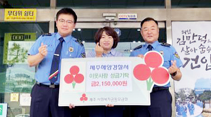 Á¦ÁÖÇØ¾ç°æÂû¼(¼Àå Áö±¹Çö)´Â ÃÖ±Ù Áö¿ª»çȸÀÇ ¾î·Á¿î ÀÌ¿ôÀ» µ½±â À§ÇØ Á¦Áֽà °ÇÀÔµ¿(µ¿Àå ±è¹Ì¼º)¿¡ ¼º±Ý 215¸¸¿øÀ» ±âŹÇß´Ù.