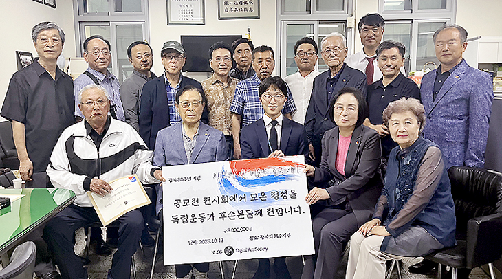 [ÇѶóÀϺ¸] ±¤º¹È¸ Á¦ÁÖÁöºÎ(ÁöºÎÀå °Çý¼±)´Â Áö³ 13ÀÏ ±¤º¹ 80ÁÖ³âÀ» ¸Â¾Æ µ¶¸³¿îµ¿°¡ ÈÄ¼Õ ¼º±Ý Àü´Þ½ÄÀ» °³ÃÖÇß´Ù.