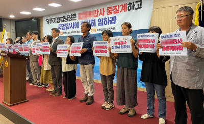 °ø¾Èź¾ÐÀúÁö ¹× ¹ÎÁÖ¼öÈ£ Á¦ÁÖ´ëÃ¥À§¿øÈ¸´Â 16ÀÏ ¿ÀÀü Á¦ÁÖµµÀÇȸ µµ¹ÎÄ«Æä¿¡¼ ±âÀÚȸ°ßÀ» ¿°í ¡°Á¦ÁÖÁö¹æ¹ý¿ø AÆÇ»ç´Â ±¹Á¤°¨»ç¿¡ Ãâ¼®Ç϶󡱰í Ã˱¸Çß´Ù.