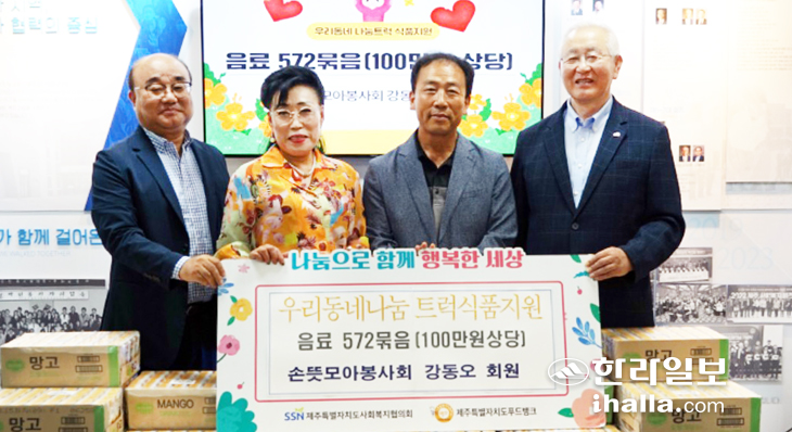 ¼Õ¶æ¸ð¾ÆºÀ»çȸ °µ¿¿À ȸ¿øÀº Á¦ÁÖÆ¯º°ÀÚÄ¡µµ»çȸº¹ÁöÇùÀÇȸ(ȸÀå °í½ÂÈ)¿¡¼ ¿î¿µÇÏ´Â '¿ì¸®µ¿³× ³ª´®Æ®·°'À» ÅëÇØ 100¸¸¿ø »ó´çÀÇ ½Ä·áǰÀ» Àü´ÞÇß´Ù.