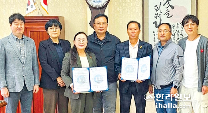 Á¦ÁÖ±¹Á¦´ëÇб³¿Í (À¯)ÇѾî¿ï¸², ³ó¾÷ȸ»ç¹ýÀÎ ÁÖ½Äȸ»ç ÈÞ¸ÕÀº 20ÀÏ Á¦ÁÖ±¹Á¦´ëÇб³¿¡¼ »óÈ£Çù·ÂÀ» ÅëÇØ Àü¹®Àη°³¹ßÀ» À§ÇÑ °øµ¿»ç¾÷À» ÁøÇàÇÏ´Â ¾÷¹«Çù¾à(MOU)À» ü°áÇß´Ù.